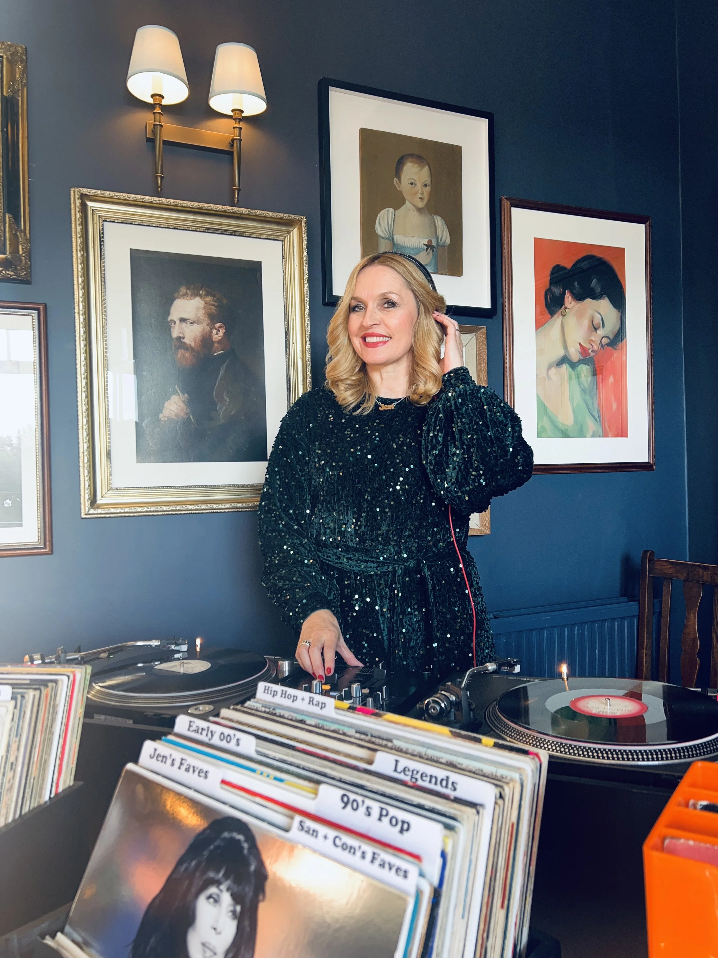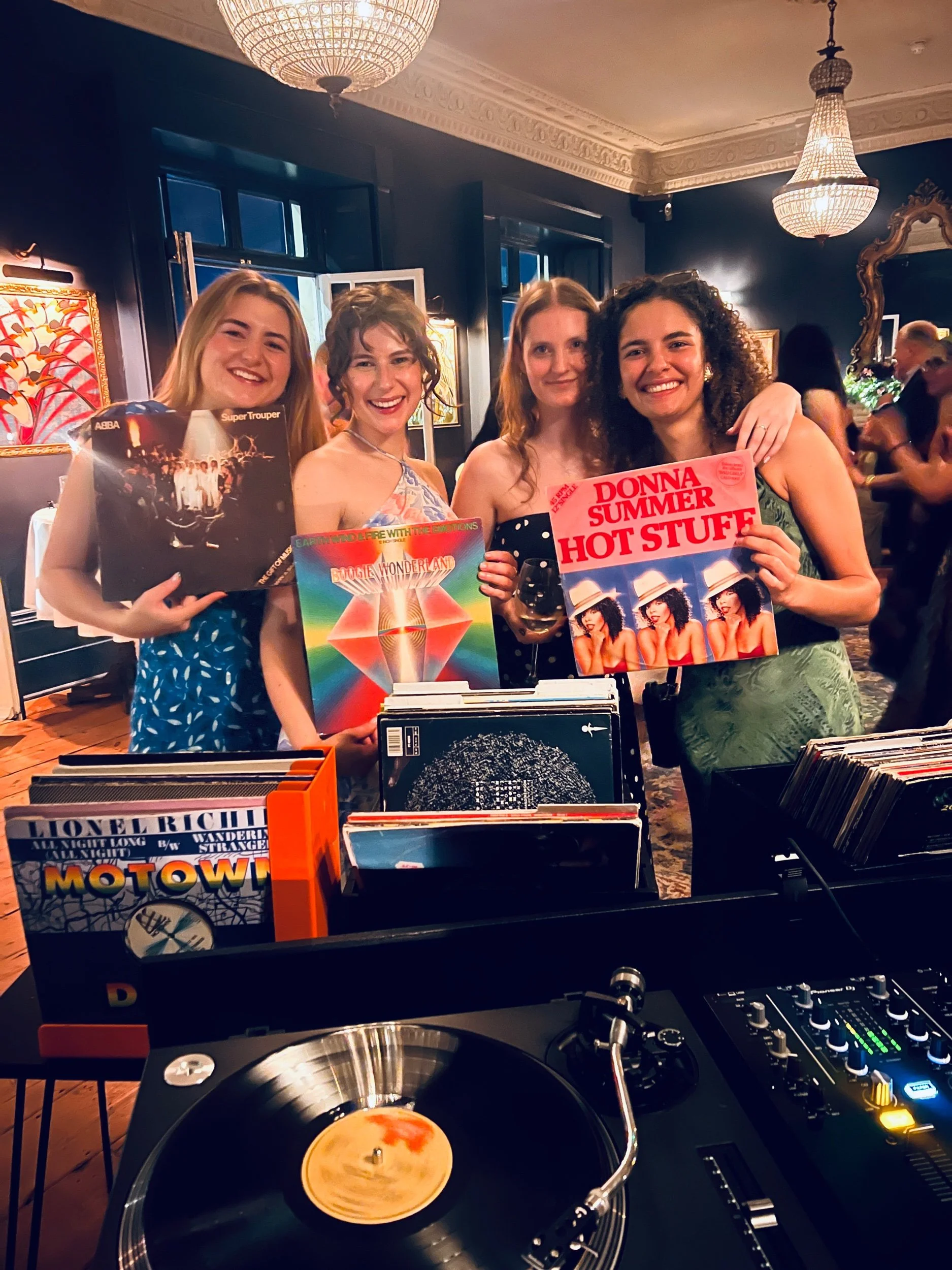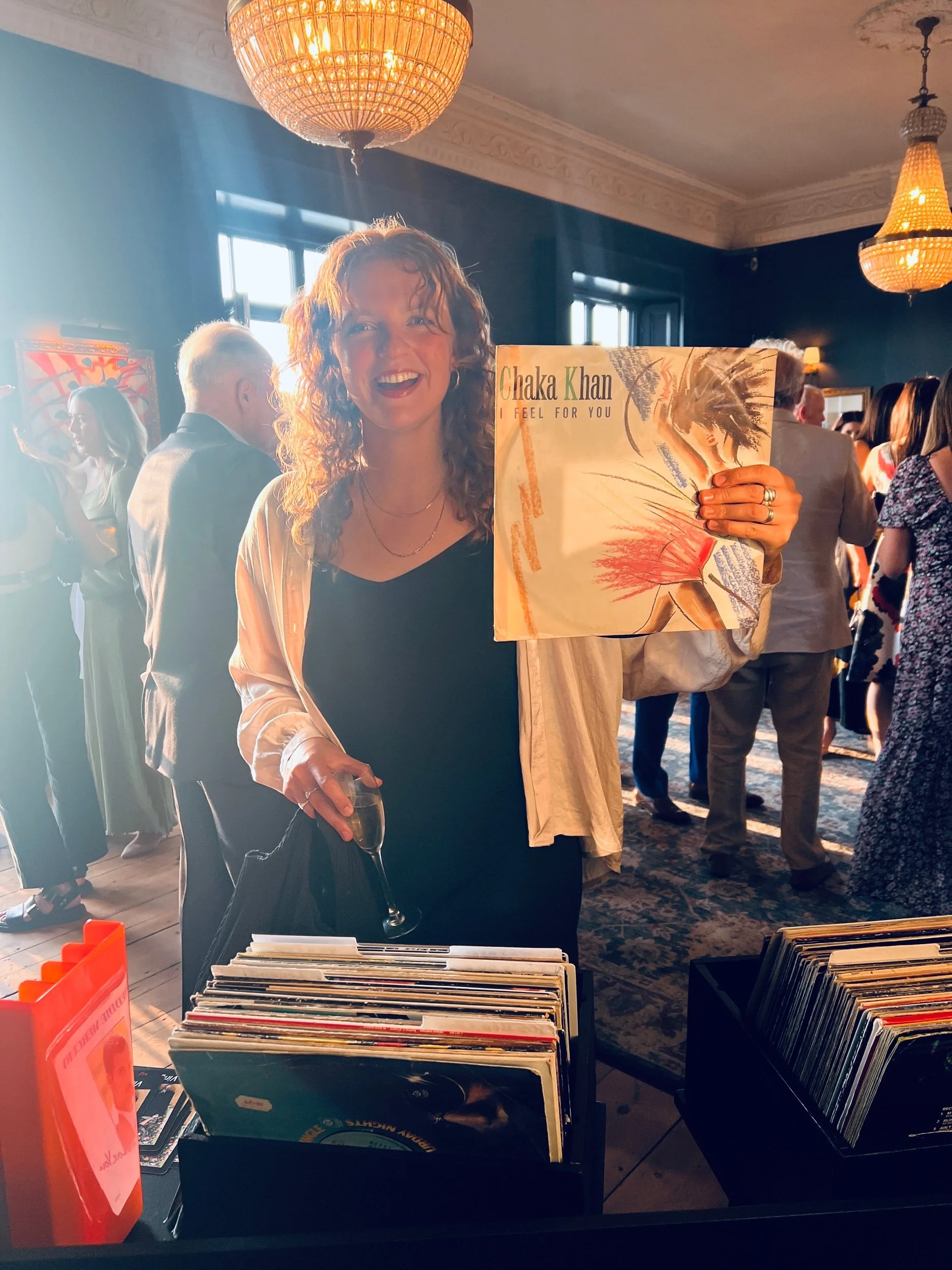 We were lucky enough to book Vinyl Jen for our wedding party with sixty guests. Jen really added to the evening with style and sophistication, reading the room perfectly and playing all the right genres of music to get everyone up on the dance floor. People loved being able to choose a track or two from Jen's extensive vinyl collection which would then go straight onto a turntable. Jen will make your party / event go with a real swing! ~ Conall & Sanela